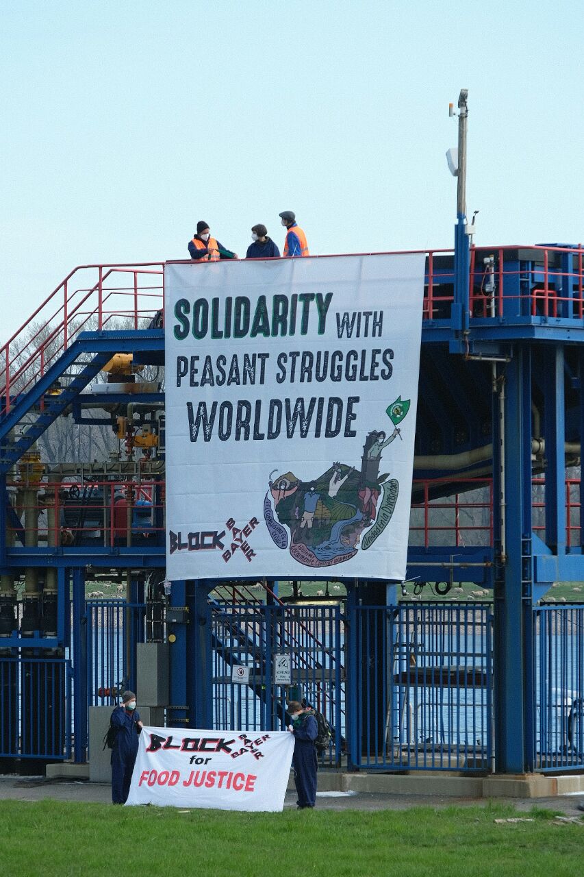 Block BAYER legt Verladestationen lahm +++ Produktionsstätte von BAYER Crop Science betroffen +++ Block BAYER setzt Zeichen zum Internationalen Tag des bäuerlichen Widerstands