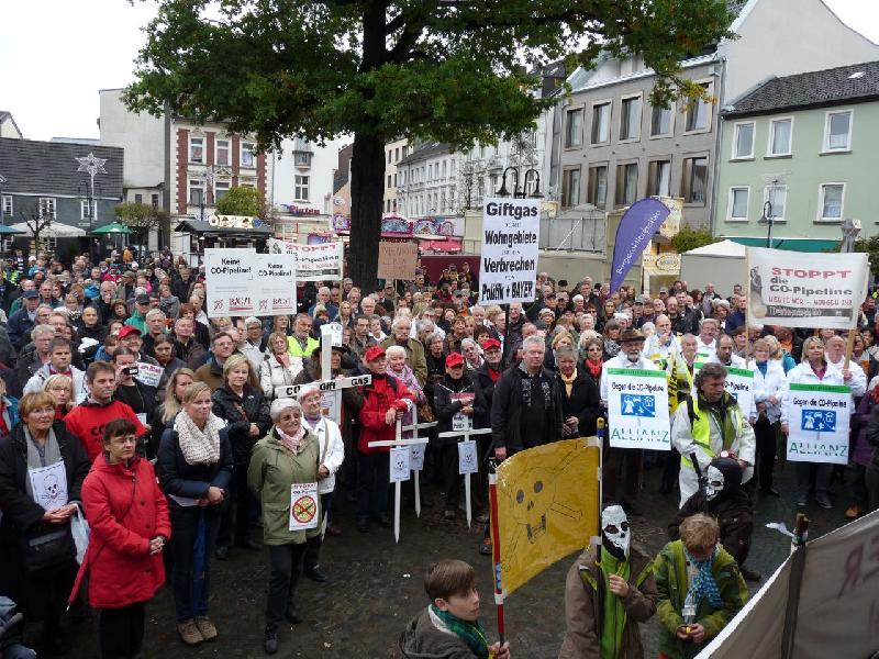 BAYER will hochgiftiges Kohlenmonoxid (CO) per Pipeline von seinem Dormagener Werk nach Krefeld leiten, quer durch dicht besiedelte Gebiete. Die betroffenen Kommunen kritisieren das Projekt ebenso wie Anwohner und Umweltverbände. Gerichtlich konnte der Betrieb der Leitung bislang verhindert werden. Allerdings wird CO seit 2001 von Dormagen nach Leverkusen transportiert – durch eine 50 Jahre alte Leitung, die für ungefährliche Gase gebaut wurde.