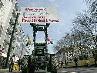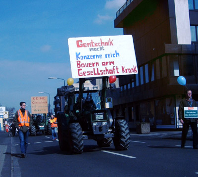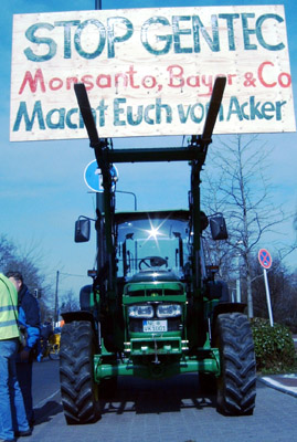 Allein in Düsseldorf zogen am Freitag rund 300 Gentechnik-Gegner mit Traktoren und Anhängern vom Saatgut- und Chemiekonzern Monsanto zum nordrhein-westfälischen Landtag und überreichten den Landtagsfraktionen eine Unterschriftenliste. Auf Spruchbändern und Plakaten forderten sie die Gentech-Produzenen auf: »Macht Euch vom Acker!« Mehrere Redner verlangten ein Verbot des Einsatzes von Gentechnik in der Landwirtschaft und den Schutz des gentechnikfreien Anbaus.