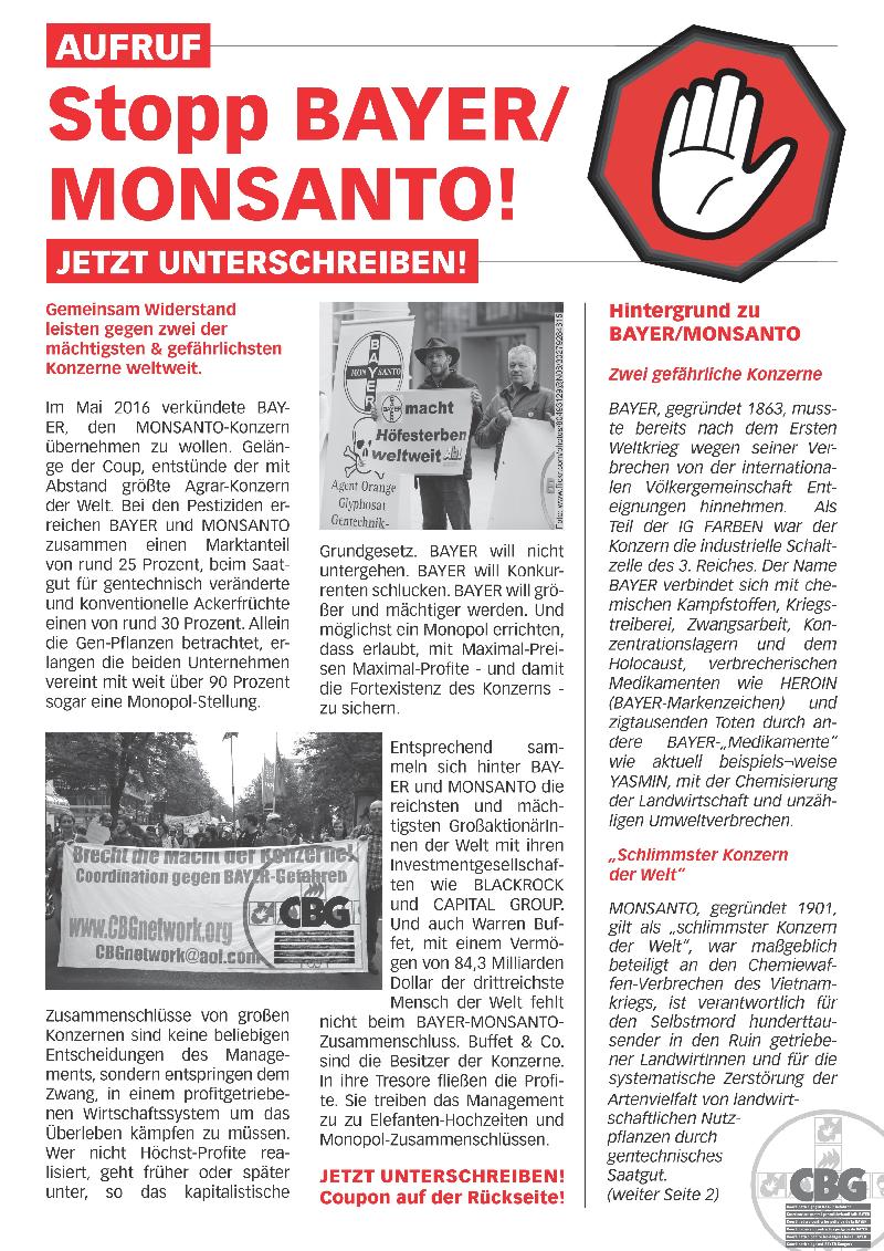 Kampagne „Kooperation von BAYER und Vereinten Nationen beenden!“