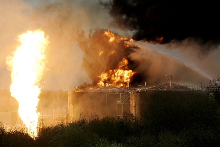 Schon beim Einkauf tuschelten die Leute und deuteten immer wieder zum Fenster hinaus, wo eine helle Flamme weithin sichtbar war. Zuerst dachten wir, dass es sich um einen Routinevorgang vom Werk handeln würde. Schon oft bin ich nachts wach geworden, weil die halbe Wohnung von einem Feuerschein erhellt war. Doch dieses Mal wurde schnell klar, dass es sich nicht um ein kontrolliertes Abfackeln handelte. Sirenen von Feuerwehr und Polizei schrillten plötzlich durch die Straßen und wir hatten nur noch einen Gedanken: nach Hause und Türen und Fenster verriegeln.