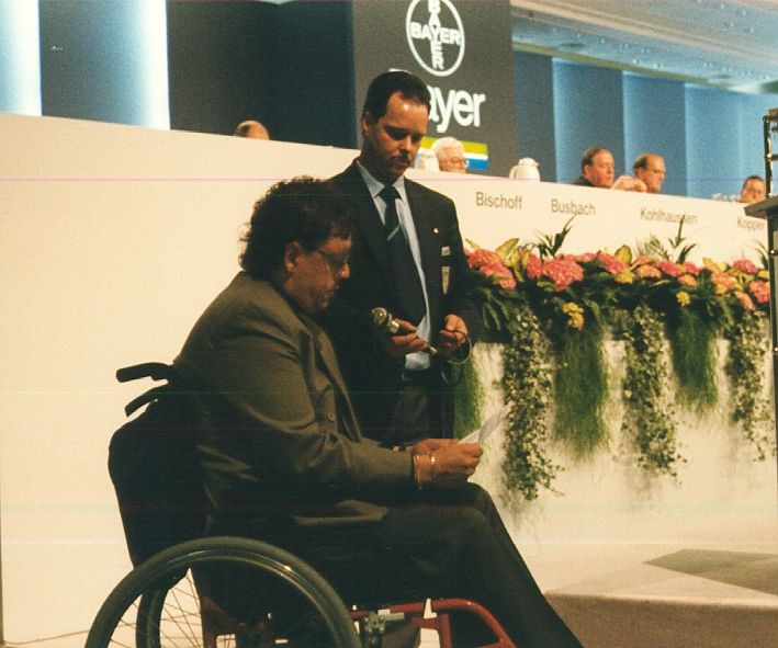 Todd was one of the most important activists who exposed BAYER´s responsibility and fought for compensation. This is what he said in the BAYER shareholder meeting, in front of the Bayer board and thousands of shareholders: “As long as profits are more important than safety, lives will be lost. Thousands of dead hemophiliacs are testament to this fact. Read his complete speech here.