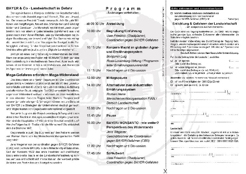 17.45 Uhr Schlußwort Uwe Friedrich (Stadtplaner), Coordination gegen BAYER-Gefahren