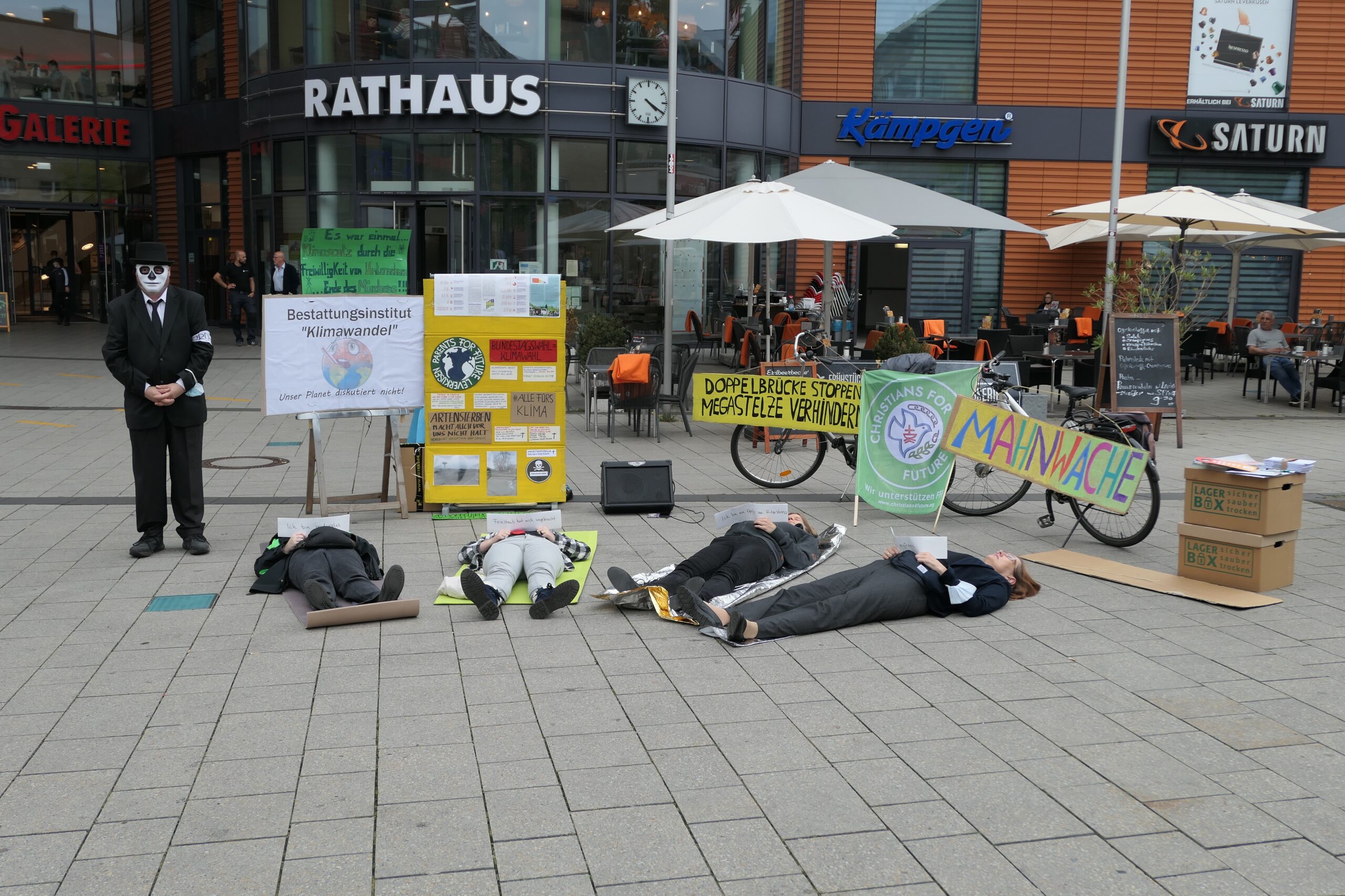 - Leverkusen mit dabei- bei einem Die in der Parents for Future. Diese machten mit drastischer Symbolik darauf aufmerksam, was passiert, wenn die CO2-Grenzwerte nicht eingehalten werden.