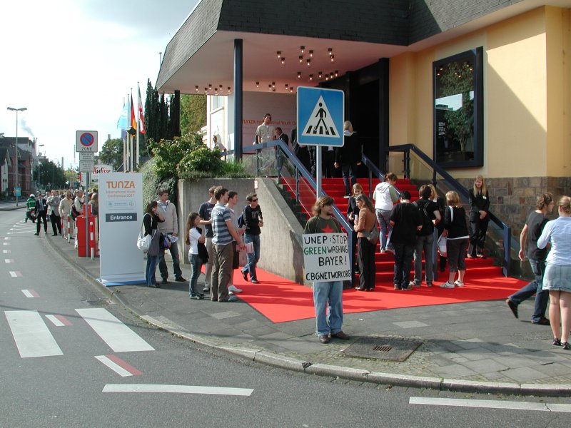 Die Coordination protestierte bei der Eröffnung der Konferenz in Leverkusen, die Medien berichteten hierüber ausführlich. Auch Teilnehmer der Tagung kritisierten der CBG gegenüber die Abhängigkeit der UNEP von privatwirtschaftlichen Interessen und diskutierten die Kehrseiten der Geschäftspolitik von BAYER sogar während der Konferenz. Es ist damit gelungen, Teile der Öffentlichkeit und der Medien auf die Instrumentalisierung einer dem Allgemeinwohl verpflichteten Institution aufmerksam zu machen. Zudem haben wir erreicht, dass sich alle Beteiligten – UNEP, BAYER und die Jugendlichen aus aller Welt – intensiv mit unserer Kritik beschäftigen mussten.