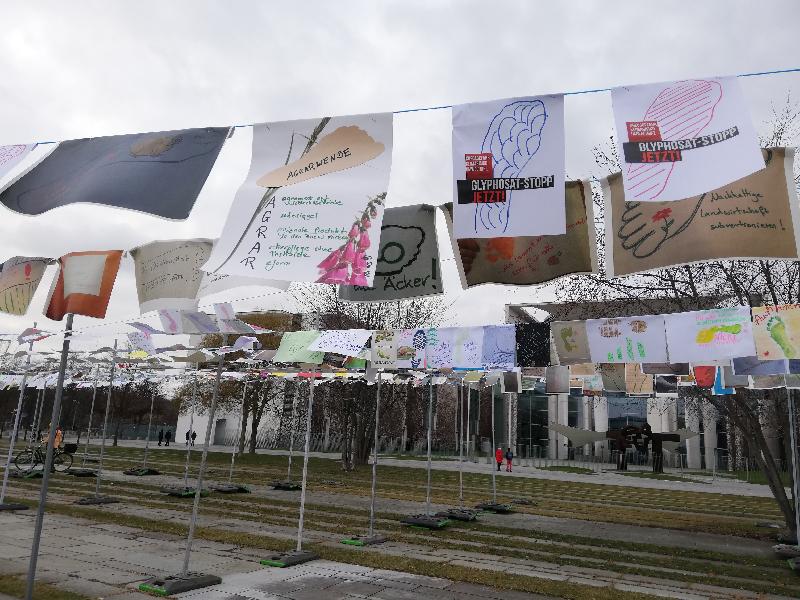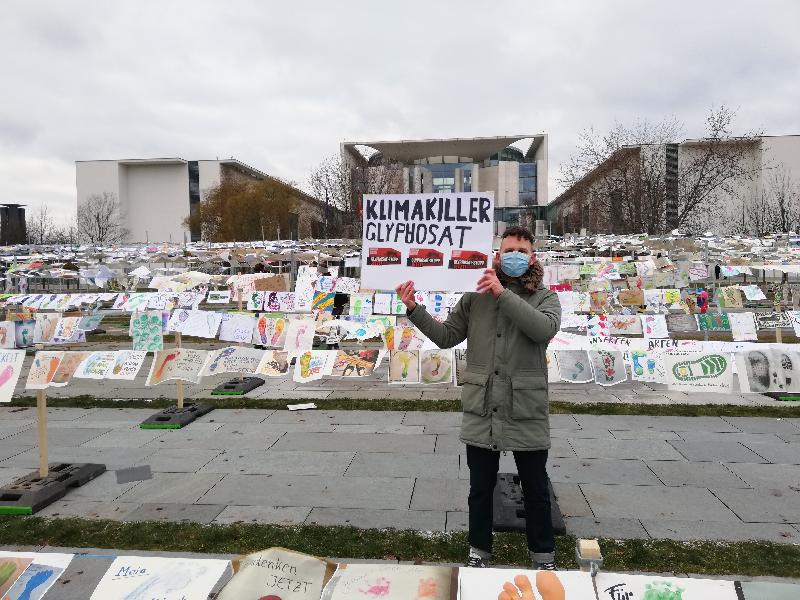 Natürlich war auch die Coordination vor Ort. Im Rahmen unserer Kampagne „Krebsgefahr. Klimarisiko. Umweltgift. Glyphosat-Stopp jetzt!“ wiesen wir in unserer Rede auf die Rolle der Bundesregierung bei der Verschleppung von Maßnahmen gegen das Ackergift Glyphosat hin. Auch auf der Aktion selbst waren wir unübersehbar mit unserer Forderung nach einer sofortigen Einstellung der Glyphosat-Produktion präsent.